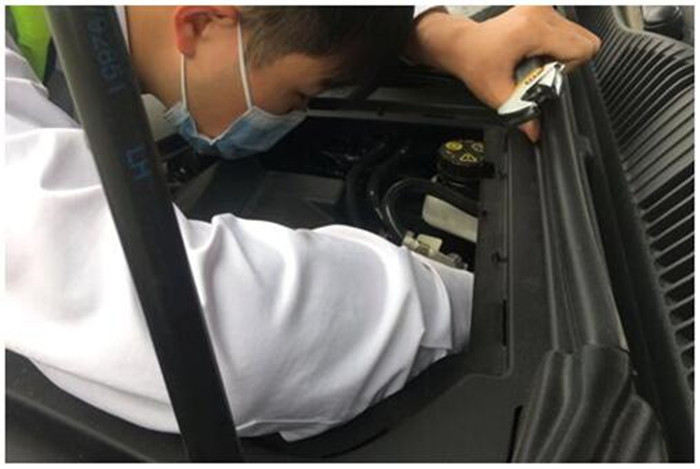 “真是沒想到,交投四環(huán)線高速公路的收費(fèi)員還會修車啊!由衷地感謝你們!”, 11月10日中午,一輛小轎車緩緩駛?cè)胄旒冶な召M(fèi)站出口24號道,在簡單了解情況后,當(dāng)班收費(fèi)員立刻向班長尹祚銘匯報情況,詢問后得知司機(jī)剛從沌口收費(fèi)站上高速,結(jié)果沒走幾公里車輛就報故障了,并且引擎蓋內(nèi)嗡嗡作響,不得已就近下站尋找修車點(diǎn)。