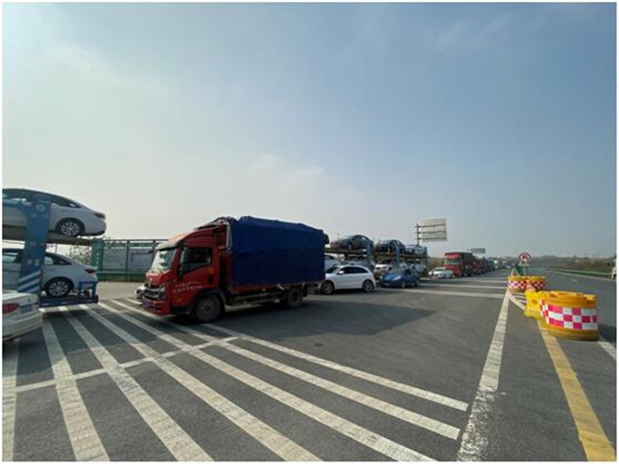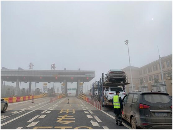 二是合理疏導,確保行車安全。大霧封道,收費廣場滯留大量車輛,當班班長合理分配人員做好專用ETC車道和混合車道的車輛指引,引導車輛有序稱重、領卡、保障入站口各個車道的行車安全。