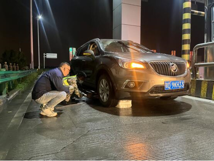 隨后班長同司機(jī)一起對(duì)車輛進(jìn)行全方位檢查,確定無其他隱患后,引導(dǎo)司機(jī)將車輛駛出收費(fèi)車道,車輛駛離前,司機(jī)表示感謝道“要不是你們及時(shí)發(fā)現(xiàn)并出手相助,我的車可能會(huì)受到更加嚴(yán)重的磨損,真的太感謝你們了!”