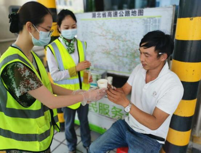 在等待車輛維修期間,細(xì)心的收費員發(fā)現(xiàn)師傅當(dāng)時狀態(tài)不佳,并伴有臉色泛白、頻繁出汗,一番詢問過后得知車輛在高速上行駛時就出現(xiàn)故障,不敢開啟空調(diào)制冷,當(dāng)班班長意識到司機可能出現(xiàn)中暑癥狀,立即從便民醫(yī)藥箱中拿出藿香正氣水助其服用,事后迅速取來冰水給司機解渴并采取濕毛巾敷臉的方法,全力緩解中暑癥狀。半小時后,癥狀已初步緩解,此時救援車輛趕來,當(dāng)班班長又馬不停蹄的趕去故障車旁配合救援人員將車輛脫離收費現(xiàn)場。臨走之前,司機師傅再次表達(dá)了感激之情并對收費站工作人員的服務(wù)連連稱贊。