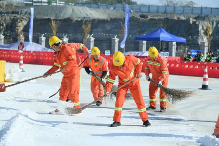 此次演練包括兩大項目,分別為模擬連續(xù)陰雨天氣,導(dǎo)致高速道路濕滑的情況;交通事故應(yīng)急處置演練。本次演練出動了融雪劑撒布車、鏟雪車、防撞緩沖車、安全警戒車等多臺設(shè)備,交警、路政、應(yīng)急搶險人員、施救人員30人在歷時近1個小時的演練過程中,積極“參戰(zhàn)”,以最快的速度和最高的效率,科學(xué)有序地完成了除雪保暢和交通事故應(yīng)急處置任務(wù),達(dá)到演練目的。