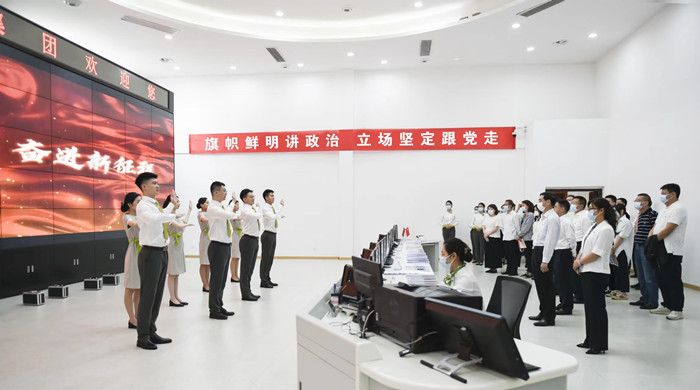 在交投集團高速公路運營公司,巡察組一行參觀了交投集團廉政作品展覽,觀看了交投集團員工原創(chuàng)歌曲《說廉》大傳唱活動視頻,進一步了解交投集團讓“廉潔文化”發(fā)聲、育人、潤心的新方法、好路徑;以高速公路運營公司聯(lián)合黨支部這一基層黨支部為縮影,通過《不負青春跟黨走》微視頻的形式,進一步了解交投集團在業(yè)務發(fā)展實踐中基層黨支部所發(fā)揮的戰(zhàn)斗堡壘和黨員先鋒模范作用,以高質量的黨建工作引領高質量發(fā)展;在運營公司監(jiān)控指揮中心,收費站所一線員工以“微笑服務”禮儀操的形式,生動展現(xiàn)窗口單位文明服務規(guī)范,以三尺崗亭小小窗口,展現(xiàn)武漢城市“大”形象。在武漢交投集團高速公路運營公司大廳內,第二巡察組臨時黨支部全體黨員和武漢交投集團黨委班子成員一同面對黨旗,重溫入黨誓詞。