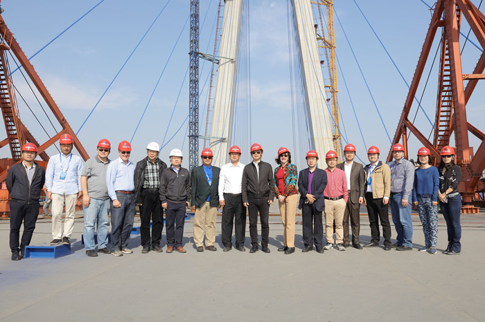 代表團一行觀看了青山長江公路大橋宣傳視頻,聽取了青山橋整體設計與建設進度方面的匯報,參觀了鋼箱梁焊接及斜拉索安裝等施工現(xiàn)場。代表團成員對青山橋項目在設計與建設方面取得的成果給予了高度評價。