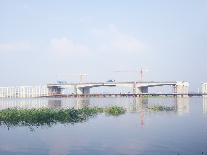 府河特大橋貫穿東西湖區(qū)和黃陂區(qū),主跨懸澆段260m,最大單孔跨度120m,是北四環(huán)線(xiàn)高速公路跨徑最大的連續(xù)剛構(gòu)橋,也是北四環(huán)線(xiàn)施工難度最大、單孔跨度最大的控制性工程。橋梁開(kāi)建以來(lái),受到社會(huì)多方關(guān)注,秉持武漢交投集團(tuán)“建設(shè)一流的工程品質(zhì)、培育一流的文化品位、樹(shù)立一流的服務(wù)品牌”的“三品”管理理念,嚴(yán)格落實(shí)“標(biāo)準(zhǔn)更高、要求更嚴(yán)、質(zhì)量更優(yōu)、安全更好”的“四更”建設(shè)要求,北四環(huán)公司全體干部職工扎根一線(xiàn),發(fā)揚(yáng)愿干敢干精神,擔(dān)起攻堅(jiān)重任,不斷創(chuàng)新管理,夯實(shí)工程質(zhì)量,狠抓施工關(guān)鍵,克服2017年十年一遇的特大洪水、府河堅(jiān)硬復(fù)雜地質(zhì)、強(qiáng)風(fēng)暴雨等一系列不利環(huán)境條件的影響,最終實(shí)現(xiàn)全橋誤差8mm精確合龍、橋體線(xiàn)形平順、質(zhì)量可靠的目標(biāo)任務(wù)。