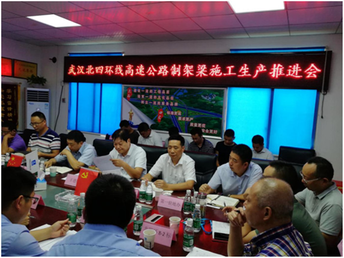 2019年9月5日,武漢交投集團(tuán)北四環(huán)公司組織召開了全線預(yù)制梁觀摩及生產(chǎn)推進(jìn)會(huì)。武漢交投集團(tuán)總工程師、北四環(huán)公司總經(jīng)理王愛民、副總經(jīng)理王德順、各駐地辦、中建總指、各梁場標(biāo)段負(fù)責(zé)人共約50余人參加了此次活動(dòng)。