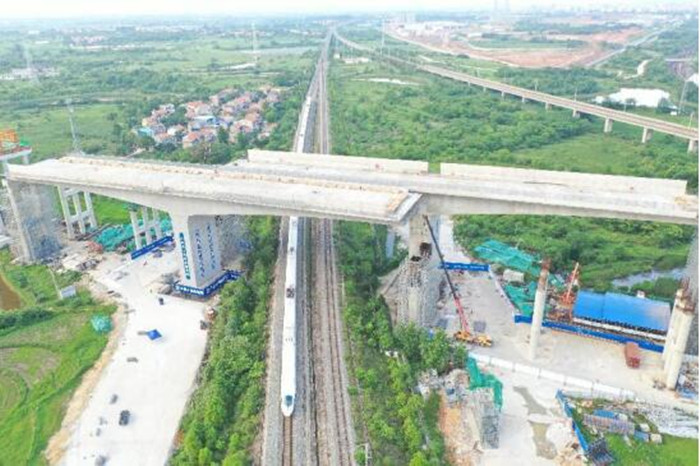 本次橋梁轉(zhuǎn)體施工依次跨越滬蓉高鐵下行線、麻武線、黃陂貨車(chē)聯(lián)絡(luò)線、滬蓉高鐵上行線四條既有營(yíng)業(yè)線,作業(yè)空間高、臨近營(yíng)業(yè)線距離近、安全風(fēng)險(xiǎn)高、施工難度大,同時(shí)也是湖北省首次公路跨高鐵雙幅連續(xù)轉(zhuǎn)體施工。施工過(guò)程中,工作人員搶抓夜間“天窗點(diǎn)”,運(yùn)用BIM技術(shù)構(gòu)建的轉(zhuǎn)體橋模型,利用測(cè)量機(jī)器人、物聯(lián)網(wǎng)無(wú)線傳輸技術(shù),對(duì)轉(zhuǎn)體過(guò)程實(shí)時(shí)跟蹤,為橋梁姿態(tài)與控制參數(shù)提供實(shí)時(shí)監(jiān)測(cè)及預(yù)警,保證安全平穩(wěn)轉(zhuǎn)體,成功將誤差控制在2毫米以?xún)?nèi),同時(shí)最大程度上減少對(duì)運(yùn)營(yíng)鐵路的干擾。