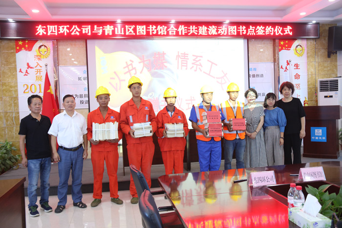 青山區(qū)圖書館黨支部書記鄧?guó)P芝表示,東四環(huán)線項(xiàng)目是青山區(qū)圖書館在青山設(shè)立的第27家流動(dòng)圖書站點(diǎn),雙方將共同攜手將“精神食糧”送到工地,送到工友身邊,點(diǎn)亮閱讀之燈,照亮閱讀之路。