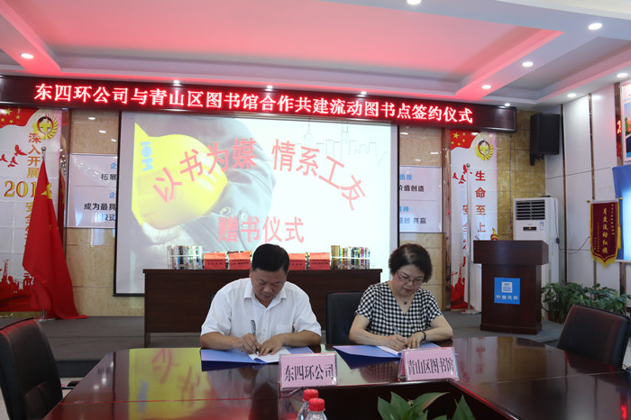 為進(jìn)一步滿足產(chǎn)業(yè)工人的精神文化需求,豐富產(chǎn)業(yè)工人業(yè)余文化生活,提高產(chǎn)業(yè)工人技術(shù)水平和文化素養(yǎng),推進(jìn)“書香東四環(huán)”文化建設(shè),8月7日上午,武漢交投集團(tuán)東四環(huán)公司與青山區(qū)圖書館在東四環(huán)一標(biāo)會(huì)議室舉行了共建流動(dòng)服務(wù)圖書點(diǎn)簽約儀式,青山區(qū)圖書館黨支部書記鄧?guó)P芝、青山區(qū)圖書館副館長(zhǎng)吳紅勤、交投集團(tuán)安全部部長(zhǎng)、東四環(huán)公司總監(jiān)汪幫平、交投集團(tuán)第七黨支部書記沈海濤出席了簽約儀式。