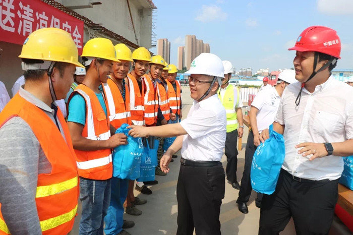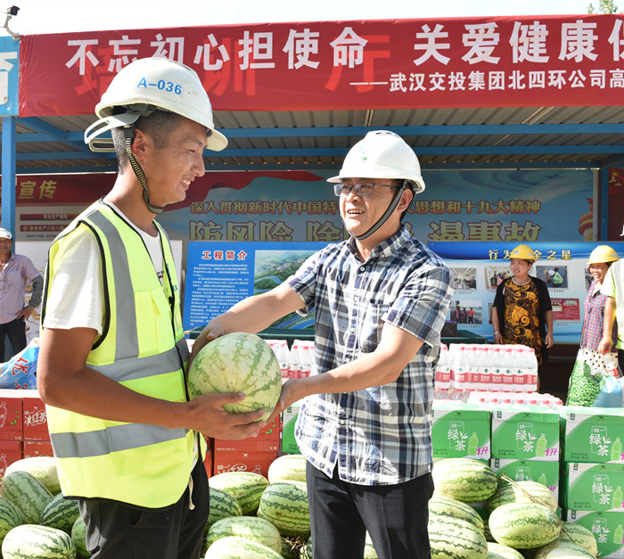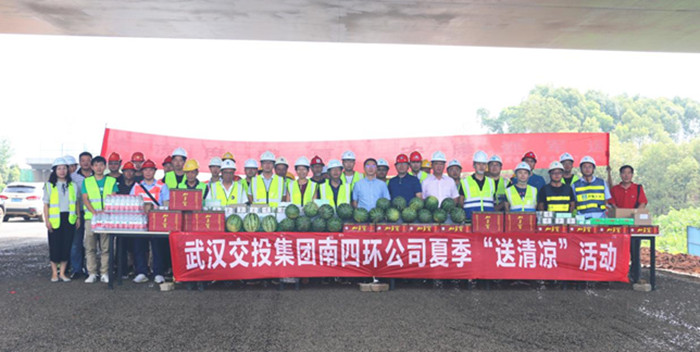 炎炎夏日,驕陽似火,高溫下的施工現場更是一派熱火朝天、奮臂揮汗的繁忙景象。入伏以來,武漢交投集團全體黨員干部職工始終堅守在各重點工程建設一線,無懼烈日暴曬,無畏酷暑炙烤,用辛勤的汗水譜寫“守初心、擔使命”的時代贊歌。近期,集團領導班子成員兵分多路,深入工程建設一線,開展高溫“送清涼”慰問活動,表達對奮斗者的關心和支持,切實維護廣大職工身體健康安全,確保順利完成各項生產經營任務: