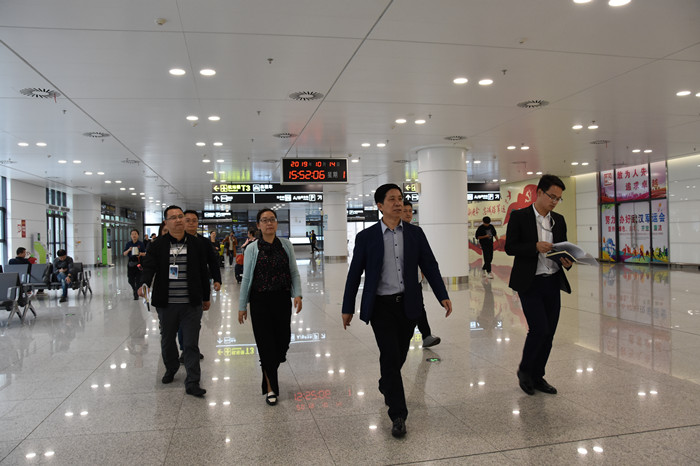 陳順平一行實地察看了天河機場交通中心旅客集散大廳、商務會議中心、社會停車場等,他指出,作為華中地區(qū)首個綠色換乘綜合中心,天河機場交通中心承擔著航空、城際鐵路、地鐵、公路長途、公交、出租車、社會車輛等7種交通方式的無縫立體換乘的樞紐功能,在軍運會期間肩負著迎來送往的服務保障任務,是讓國內外旅客感受武漢城市“微笑”、觸摸武漢城市“溫度”的重要窗口。他要求,交投集團天河機場交通中心項目全體員工進一步提高政治站位,統(tǒng)一思想,充分運用“不忘初心,牢記使命”主題教育成果,扎實開展各項工作;進一步嚴格落實責任分工,協(xié)調聯(lián)動,合力加大排查力度,確保各項工作萬無一失;進一步加強應急、安保能力建設,組織開展培訓演練,深入開展服務保障人員業(yè)務培訓,確保服務熱情高效,高質量完成軍運會期間各項工作任務。