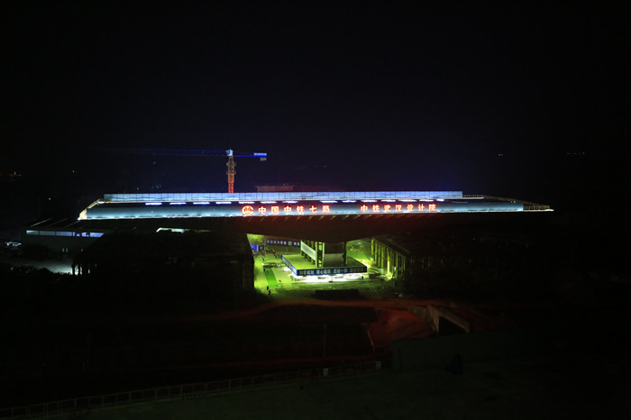 當(dāng)天00時(shí)50分,隨著一聲令下,總長(zhǎng)142米、寬42.9米、重3.3萬噸的梁體,在2臺(tái)600噸千斤頂及牽引索的拉動(dòng)下,逆時(shí)針旋轉(zhuǎn)87.47度至設(shè)計(jì)位置,成功跨越武漢北下行環(huán)發(fā)線、京廣貨線下行2條鐵路線,于2時(shí)40分轉(zhuǎn)體精確就位。