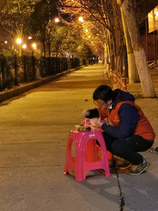 “剛開(kāi)始時(shí)有些居民還不理解,不愿意跟我們交流溝通。慢慢地大家也都理解了,現(xiàn)在基本都非常配合我們的工作。”除了執(zhí)勤守崗,突擊隊(duì)員們還擔(dān)當(dāng)起了政策講解員,甚至有些上了年紀(jì)的困難居民出不了門,買不著米面油等都直接來(lái)找路邊的“紅袖章”,突擊隊(duì)員們還兼任起了“后勤員”“聯(lián)絡(luò)員”,全方位保障居民群眾的日常生活,而突擊隊(duì)員們的一日三餐則是“蹲”在路邊匆匆解決。