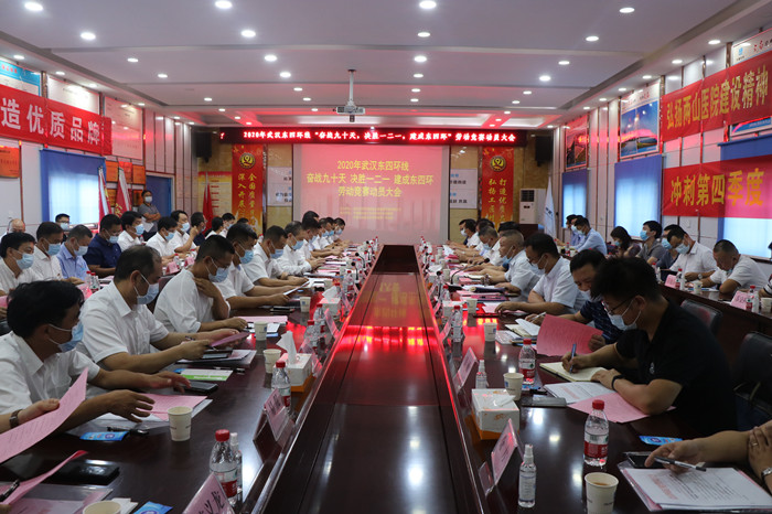 “奮戰(zhàn)九十天、決勝一二一、建成東四環(huán)”勞動競賽動員大會現(xiàn)場