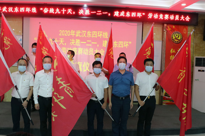 動員大會上,陳順平發(fā)表了主題為《克難攻堅擔(dān)重任、凝心聚力圓四環(huán)》的重要講話。他指出,建成四環(huán)線是政治任務(wù),是使命擔(dān)當(dāng),是重大機遇,意義非凡。開展勞動競賽的主要目的是希望東四環(huán)項目全面提速、全面沖刺、奮戰(zhàn)九十天、決勝一二一,年底實現(xiàn)通車總目標(biāo)。全體參建單位要形成大干快上的“態(tài)勢”,拉開全力沖刺、全面競賽的“架勢”,營造精神振奮、勇奪第一的“氣勢”。在“爬坡過坎”“滾石上山”的硬仗階段,他強調(diào),一要統(tǒng)一思想。各單位要思想統(tǒng)一,步調(diào)一致,進一步弘揚“生命至上、舉國同心、舍身忘死、尊重科學(xué)、命運與共”的偉大抗疫精神,將項目建成通車作為一項政治任務(wù)高效完成。二要強化措施。做到四個“堅持”:堅持優(yōu)化方案,做到交叉作業(yè),上足資源投入,及時計量支付;堅持提升建設(shè)效率,“當(dāng)日事當(dāng)日畢”;堅持后方領(lǐng)導(dǎo)親自掛帥、親自出征、親自調(diào)度、親自協(xié)調(diào),以更強的力度、更實的舉措推動項目建設(shè);三要確保質(zhì)量。樹立項目全壽命周期理念,做到五個“注重”,注重工程實體質(zhì)量,注重外在形象質(zhì)量,注重工藝工法,注重工程細節(jié),注重成品保護,確保工程質(zhì)量優(yōu)良。四要繼續(xù)做好常態(tài)化疫情防控工作。堅持各項防疫制度,消除麻痹大意思想,做到生產(chǎn)經(jīng)營和防疫工作兩手抓,兩手硬。
