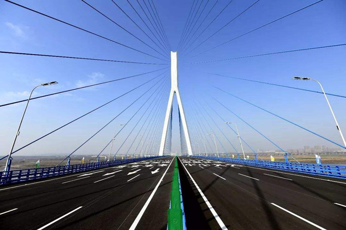 青山長江大橋主橋位于武漢最大碼頭武鋼外貿(mào)碼頭和武漢最大錨地王家屋錨地之間,是長江武漢段黃金航道。 為滿足大橋荷載重、車流量大、航道寬等需求,大橋設(shè)計為主橋鋼梁無下橫梁支撐,依靠斜拉索的拉力處于全懸浮狀態(tài)。這種設(shè)計,使大橋在地震等環(huán)境下可以像“蕩秋千”一樣蕩起來,可以很好適應(yīng)運營工況及溫差、大風(fēng)、地震等外力作用下的位移變形,避免結(jié)構(gòu)共振,起到抗震消能的作用。
