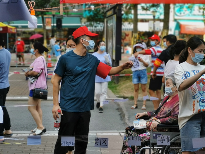 疫情就是命令,防控就是責(zé)任,核酸檢測現(xiàn)場就是疫情防控“戰(zhàn)場”。武漢交投集團(tuán)下沉工作隊由集團(tuán)基層黨支部書記、支委“頭雁領(lǐng)航”,黨員干部分成兩支工作隊分赴對口社區(qū),在社區(qū)黨委的統(tǒng)一安排下,主要負(fù)責(zé)核酸檢測期間的門崗值守值班、維護(hù)現(xiàn)場秩序、信息采集登記,物資搬運(yùn)等工作。從驕陽似火的早8點到悶熱難耐的晚10點,市交投集團(tuán)下沉工作隊的隊員們衣服濕透了顧不上休息,聲音沙啞了顧不上喝水,一遍遍嚴(yán)謹(jǐn)認(rèn)真地重復(fù)著工作流程,不留余力揮灑汗水,爭分奪秒助力全員核酸檢測工作,確保了核酸檢測工作現(xiàn)場的安全順暢、秩序井然。