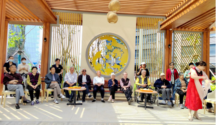 上午10點(diǎn),康養(yǎng)園區(qū)小廣場(chǎng)上笑聲不斷,吹拉彈唱設(shè)備架起來,演員們換上舞蹈服,主持人開始報(bào)幕,入住老人被護(hù)理人員有秩序地?cái)v扶下樓,一邊觀看節(jié)目,一邊曬著太陽,享受著園區(qū)內(nèi)獨(dú)有的春色。