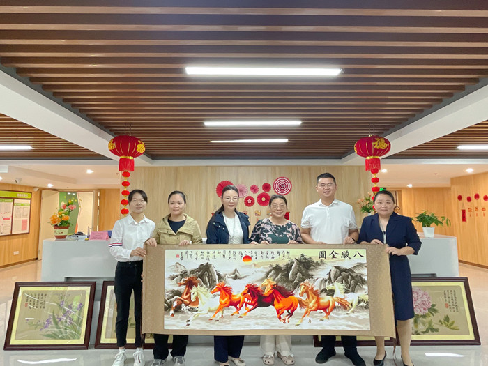 入住老者家屬向康養(yǎng)公司贈送刺繡作品《八駿圖》,表達(dá)感謝