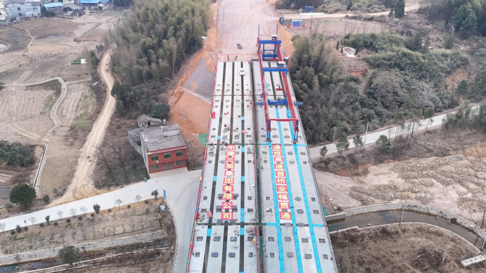 12月29日,伴隨著架橋機精準移位落梁,由武漢城發(fā)集團所屬交投集團投資建設(shè)的通城至修水高速公路(湖北段)項目漢興村大橋最后一片預(yù)制箱梁架設(shè)成功,標志著項目首座橋梁實現(xiàn)全幅貫通,為后續(xù)橋面施工奠定堅實基礎(chǔ)。